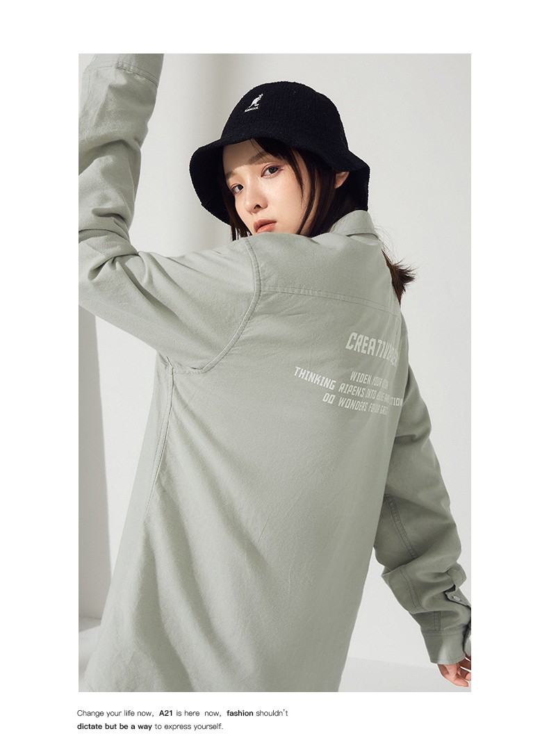 純粋なオンラインブランドA 21秋のカップルモデルで、2020年には折り襟アルファベットのプリントシャツツの青春長袖の潮騒の牛津紡の上着R 403110030浅緑165/80 A/Sを新調しています。