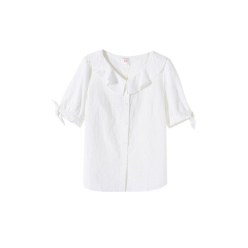 純正オンラインブランドA 21夏2020レディ・スフには、純色の襟付き上着を新たに着用しています。ゆったりとしたシルエットで袖を開けた女性用五分袖シャツF 022103特白160/84 A/M