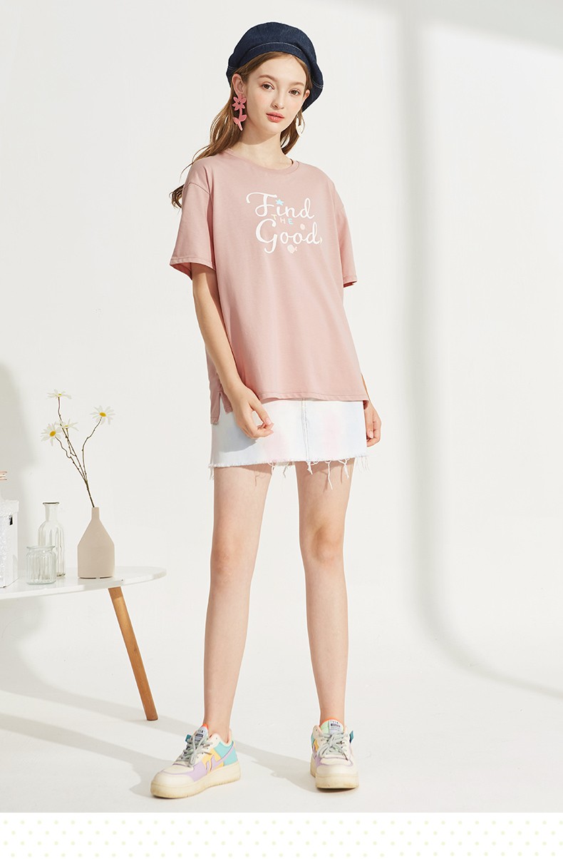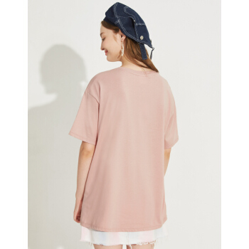 純正オンラインブランドA 21レディ・スーフ・ショーンのゆったりしたラウンドネック半袖Tシャッツ2020夏に新上着を着たキャラクタープリントカジュアル服F 02231091ダークピンク160/84 A/M