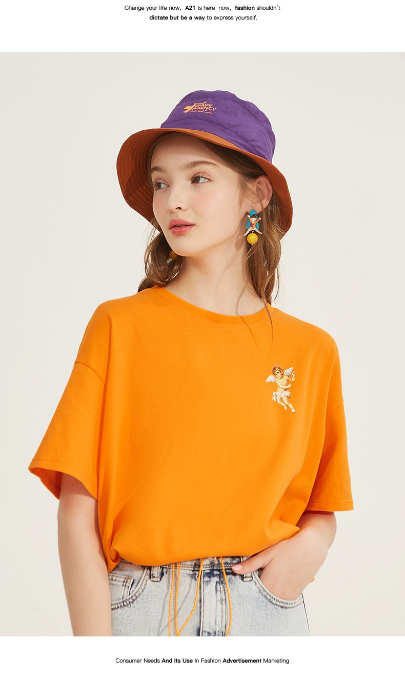 純粋なオンラインブランドA 21夏に、2020レイディ・スーフを新着しています。ファンシー・ファッション百合女商売のゆったりとしたカラーが肩に落ちます。Tシャッツプリントの半袖シャツF 42231031。カラーは165/88 A/Lです。