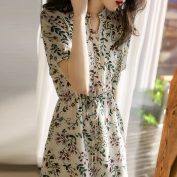 夏のラザベル半袖ワンピスティ·スファン2021年夏にはシフォンプリントの花柄のスカートを新たに着用してファッションを楽しんでいます。ウエストが細く見えるスカートの女性の写真色L【おすすめ105-15斤】