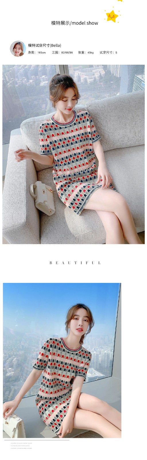 小馬夫ニットワンピス半袖新品2021年春夏レディ・スペンサー・ショー小柄で小柄で小柄で小柄な花の雰囲気が爽やかで甘いフレンチスカート女性M 726画像の色平均コード【80-120斤】