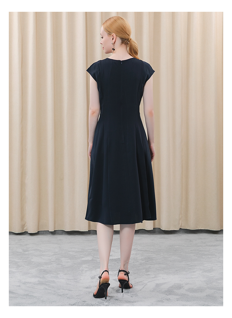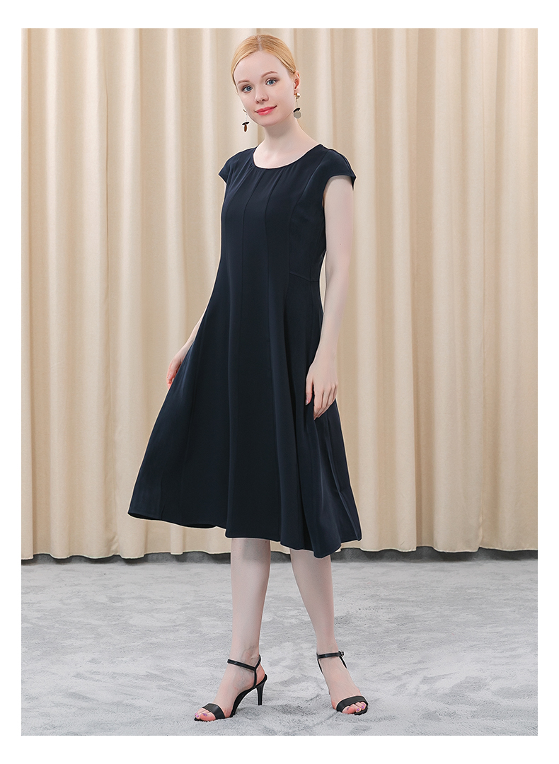 | 商品名称 | VOA(孤品)34 m重ポンドのシルククイーンです。紺の丸首育克襞気質が長めのワンピースファースY-310司馬青シャツ(L 19)165/L |