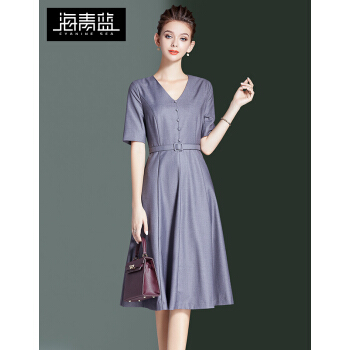 | 商品名称 | 海青雷迪ー斯フファン淑女気質V領ワンピス2021新着軽熟年齢減してウエストが細く見えるa字裙55221灰色L |