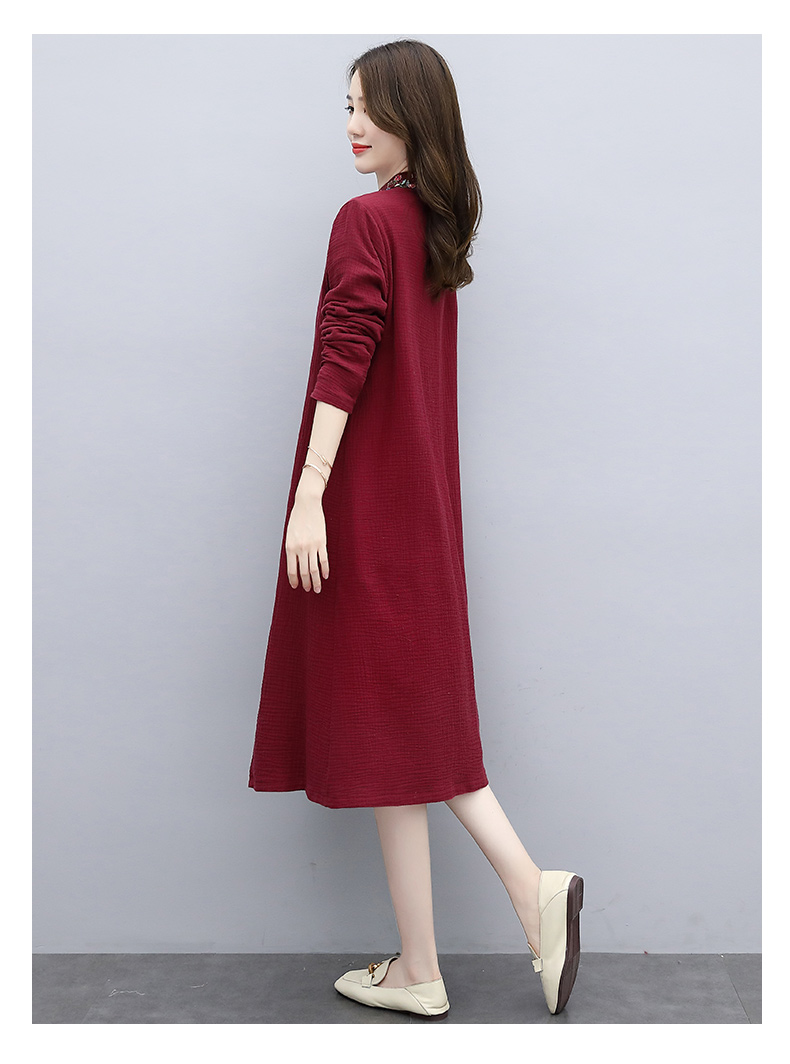 欧迪恵綿麻ワンピス女性秋冬中長款2021年秋レイディ·スファ·ションは長袖の小柄なスカートを新たに着て、細い雰囲気のニットカーディガンとトート女性の洋風の二点セットのスーツのスカートは紺色XLを隠す。