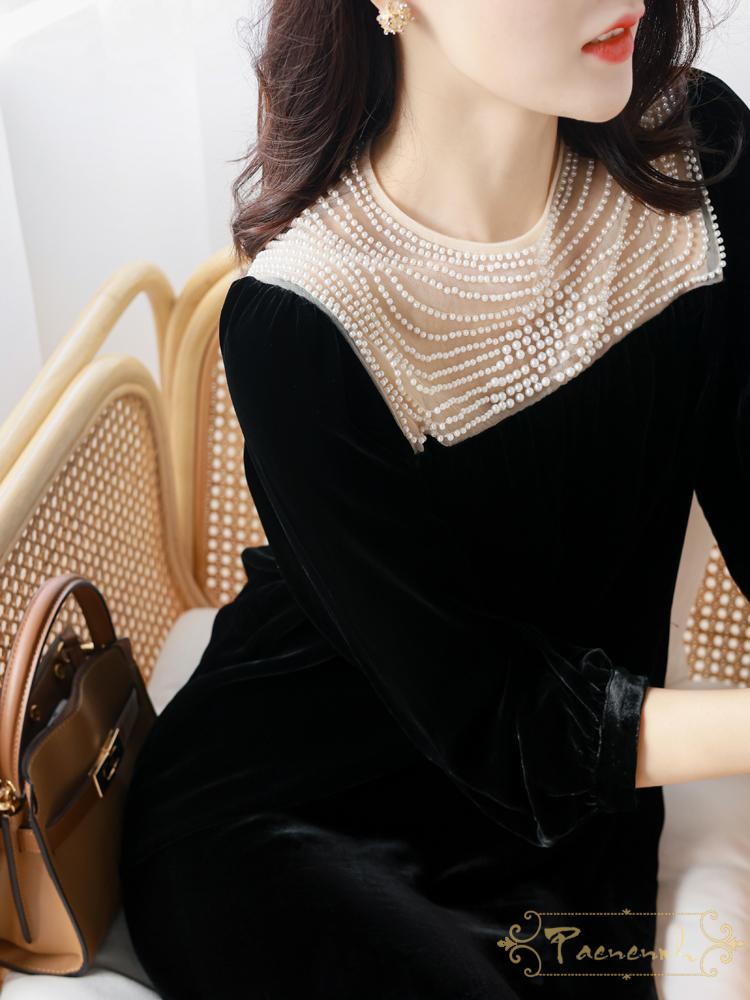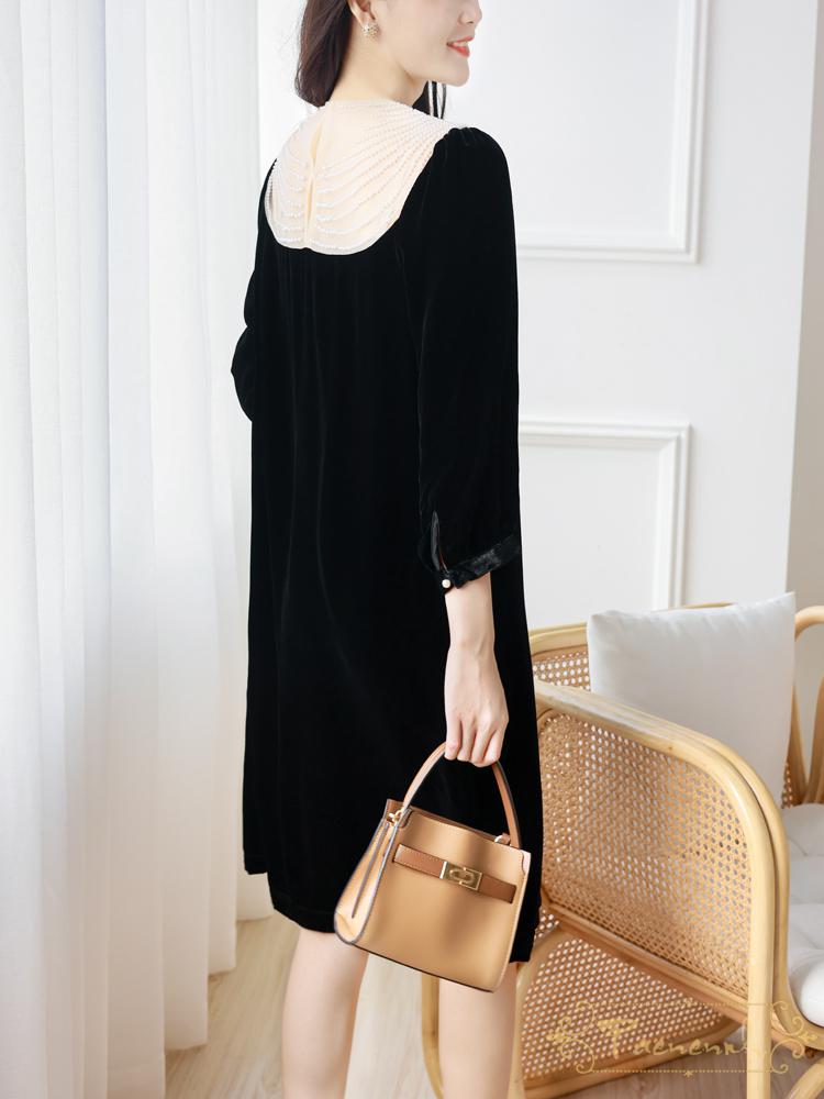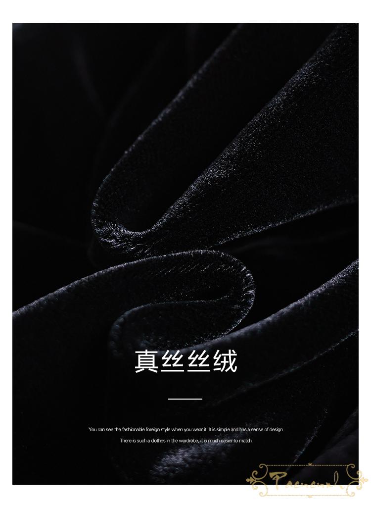 派尼英菲(PAENENPH)轻奢品牌ワンピース女2021秋贵气小礼服裙!重工手工钉珠黑色真丝绒長袖小黑裙 黑色 L【图片 价格 品牌 报价】-