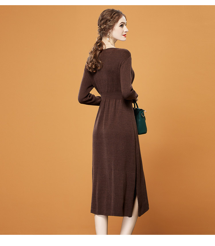 | 商品名称 | 海青2021長袖丸首ニットワンピス女性秋冬のウエストにスリムなロングタイプのボトムススカート深カレー色M |