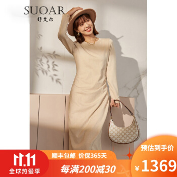 シュアアル(Suoar)の軽豪华レディディディは、ファンシーニットワンピスの女性ラウンドネックである韩版プリーツのデザイン感の中で、ロングトレッドスカート2021冬にはアンズ色のMを新たに装备しました。
