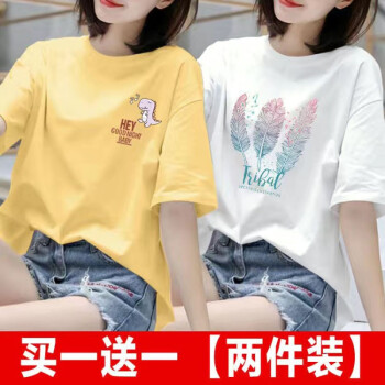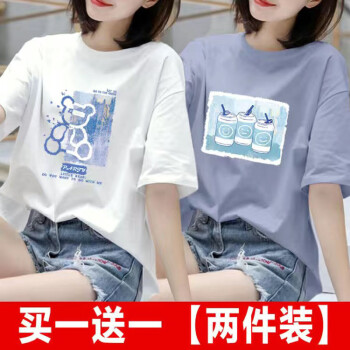 欧妤纯棉半袖t恤女2022夏レディースファッション新着韩版宽松百搭显瘦休闲体恤女上衣打底衫 白色【蓝油画熊】+蓝色易拉罐 XL建议110-120斤【图片 价格 品牌 报价】-
