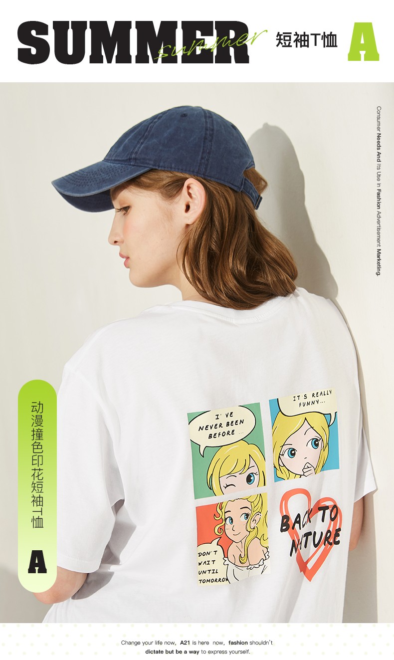 純粋なオンラインブランドA 21夏には、2020レディ・スーフファッション百合女上着を着用しています。ゆったりとした丸首が肩に落ちます。半袖の学生TシャッツF 42231058特白M