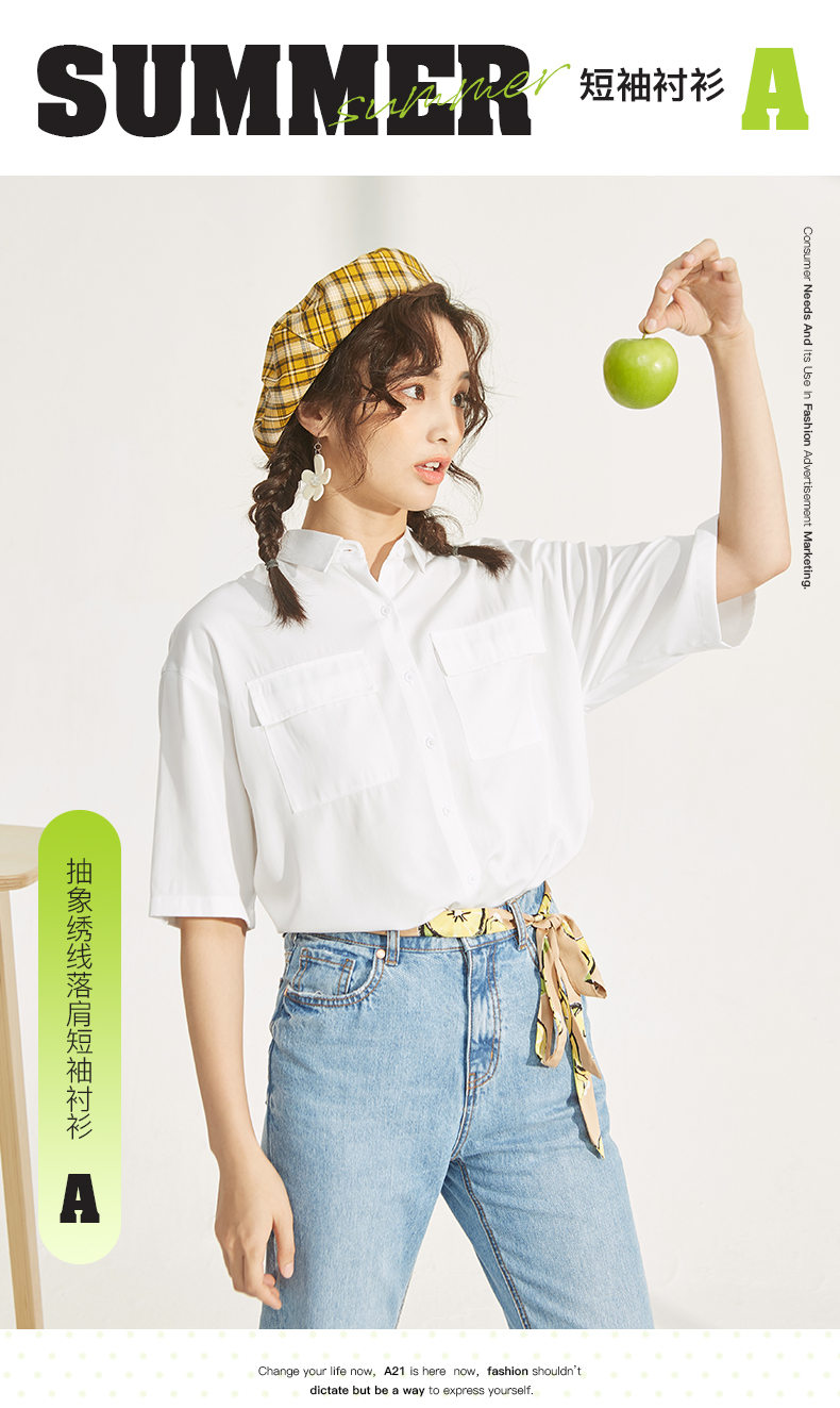 純粋なオンラインブランドA 21夏には、2020レディスフを新着しています。ホワイト百合女のゆったりしたシャッツが襟を折り、肩の中袖シャツの流れを変えています。F 0221009特白170/92 A/XL