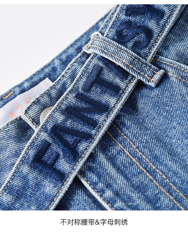 | 商品名称 | 純オンラインブランドA 21秋レイディ・スーフ2020デニムのゆったりとした腰文字の刺繍メタルジッパーの甘いストレートズボンR 403226008浅中藍30ヤード |