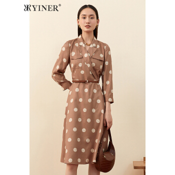 【1996系列】影儿音儿商场同款レディースファッション2021冬季新着波点真丝ワンピース 驼色 38